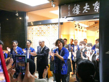 同像は瑞雲(ずいうん)に包まれた天女が花芯に降り立つ瞬間の姿を表現した、高さ11メートルの彩色木彫作品。同店の顧客に対する基本理念「まごころ」の象徴として1960(昭和35)年、佐藤玄々さんが完成まで10年の歳月を要して作った。