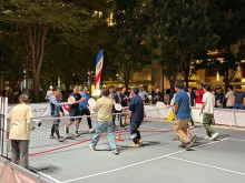 福徳の森に設置される特設ステージでは、老舗の伝統と現代の文化が交差する「クロスカルチャー」を体感する「ステージプログラム」を開催。観世流による能特別公演「羽衣」を上演(11時~11時30分、前売チケット 2,750円)。そのほか、謎解きゲーム「老舗くえすと」(チケット当日1,500円 前売1,200円」、「宮本卯之助商店プロデュース」による和太鼓演奏、「葵雋卿(あおい しゅんけい)」さんによるライブ書道や、世界大会で3度の優勝経験があるプロフリースタイルフットボールコンビ「LA CLASSIC」によるショータイム、「Neo民謡」など多様なジャンルのパフォーマンスを用意する。