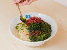 店を訪れていた近隣オフィスに務める男性客は「最初に混ぜてから食べると良いと言われて試してみた。海藻から徐々にとろみが出てきて、スープにもうまみが増し、気づいたら飲み干していた」と話す。