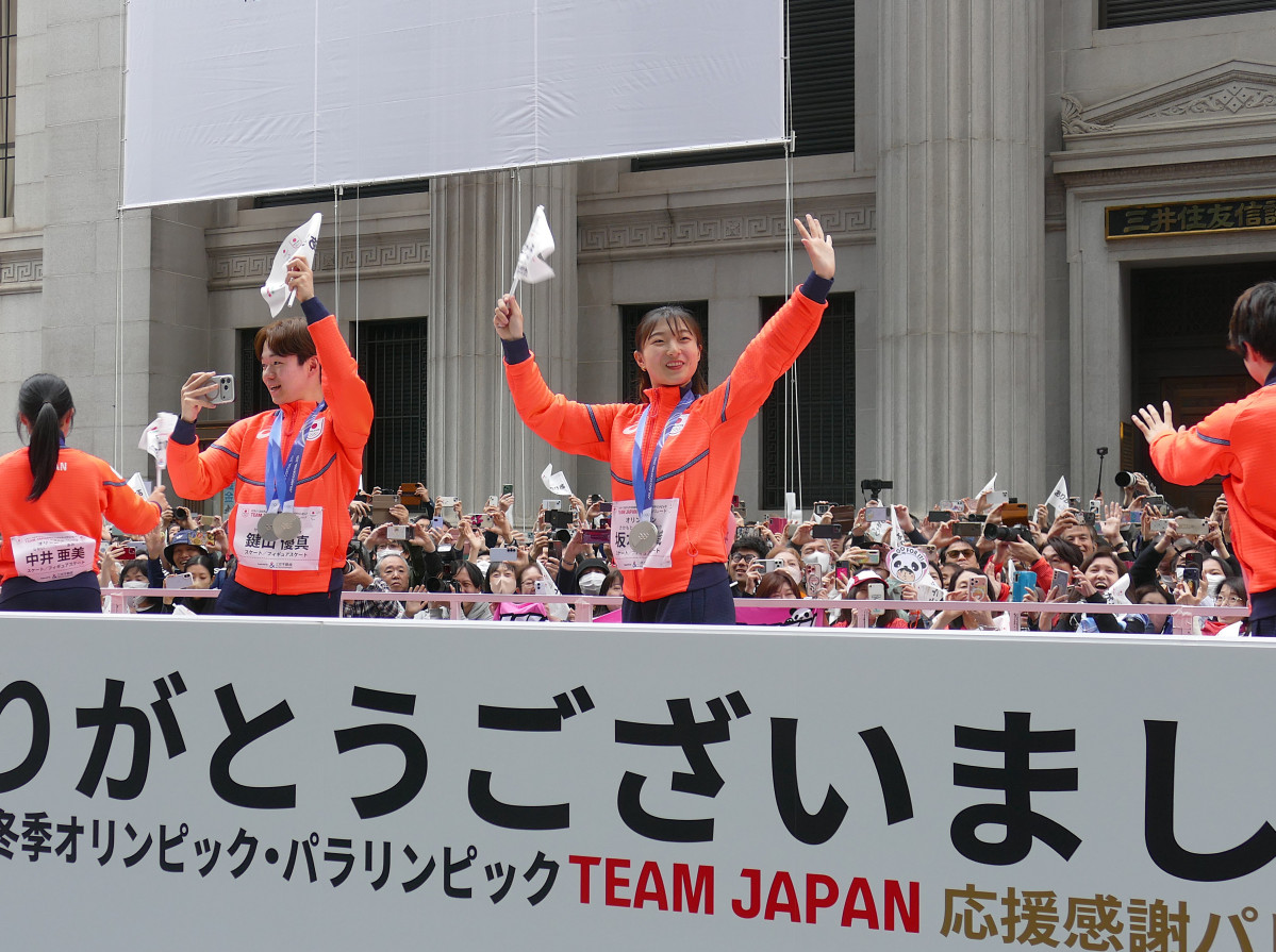 日本橋でTEAM JAPAN応援感謝パレード 冬季オリ・パラ選手が行進