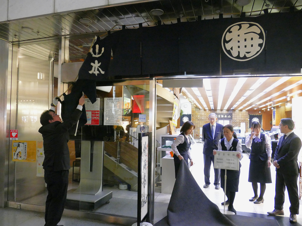 今年創業176年を迎える「山本海苔店」(中央区日本橋室町1)が11月4日、再開発に伴い本店店舗を閉鎖し、新本店を旧店舗近くにオープンした。